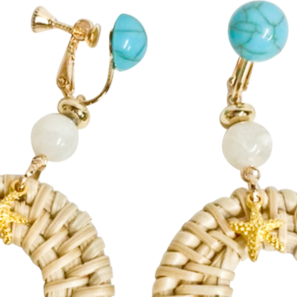 ラタン&ヒトデイヤリング【5点までメール便配送OK!送料250円】