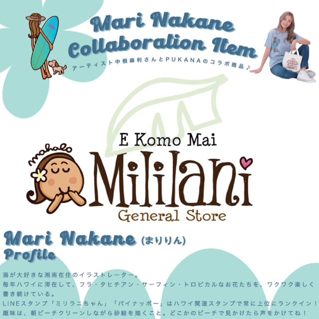 人気イラストレーターMIlilaniの中根麻利さんとのコラボアイテム♪https://www.instagram.com/mililanimari